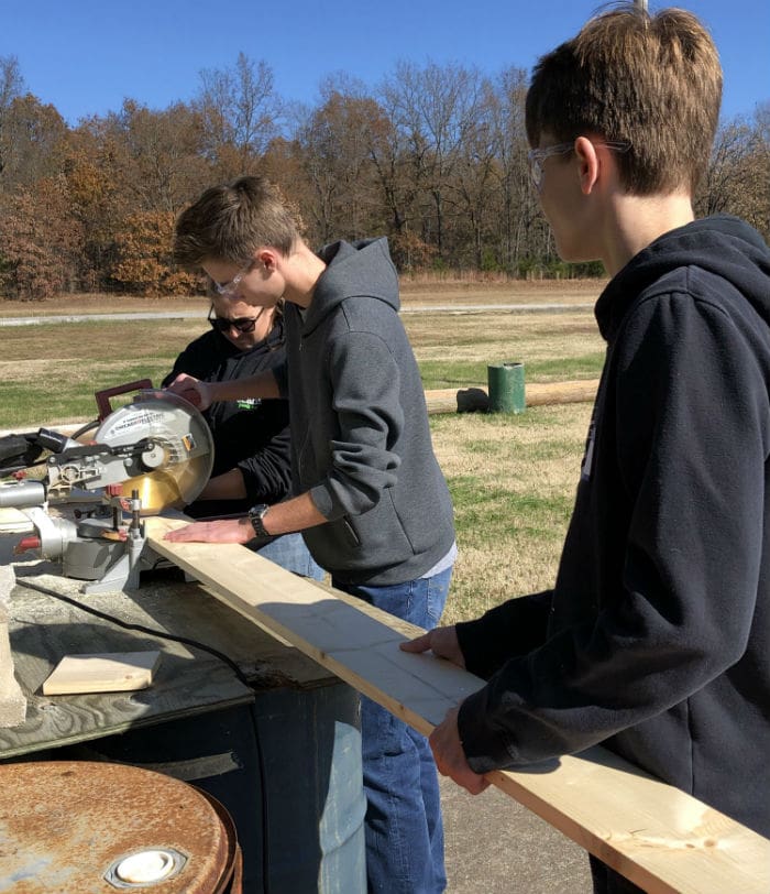 For the project, we unloaded supplies. We had wood planks, tape measures, wood glue, and a large miter saw. My school doesn’t have a woodshop or a workshop. Needless to say, I had never worked with one of these tools before. Being the oldest by a couple of years, I offered to operate the saw and cut the wood. After finding out that I had never operated a saw, the young lady gave a quick how-to on operating an electric saw, and I can now confidently say that I am proficient with a miter saw. The wood got cut (safely), we glued everything together, and voila, we made quite a few bat houses for our local flying friends.